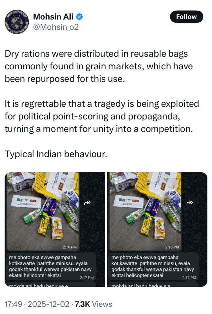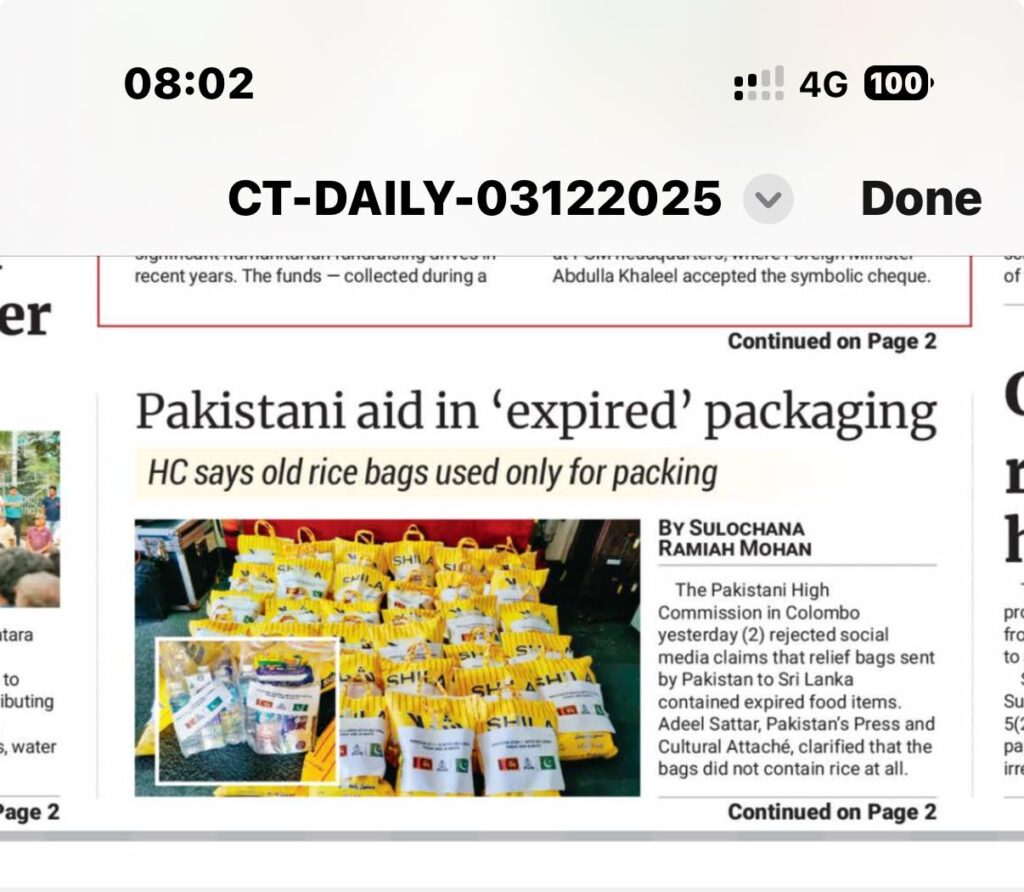 In response, the Pakistan High Commission in Colombo and Pakistan Navy sources moved quickly to clarify the true situation. They explained that the bags were reused packaging from a backlog of items present on a Pakistan Navy vessel docked in Colombo for an exercise. Crucially, the items inside the bags were not imported from Pakistan; they were fresh, essential goods (such as soap, toothpaste, sanitary items, biscuits, and milk) purchased locally in the Sri Lankan market and immediately packed into the available clean bags. Photos circulating on social media clearly confirmed that the contents included local Sri Lankan brands like Maliban biscuits, validating the High Commission’s statement. Pakistani officials argued that using readily available, clean packaging for locally procured goods was a practical solution to ensure rapid distribution during the crisis.
