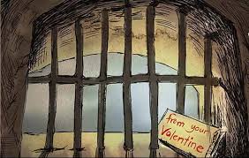 මේ බව දැනගත් අධිරාජ්‍යයා ඔහුව සිරගත කළේය. සිරමැදිරියේදී ඔහුට විනිසුරුවරයෙකු වූ ඇස්ටීරියස්ගේ උපතින්ම අන්ධ දියණිය මුණගැසුණු අතර, වැලන්ටයින් පියතුමාගේ යාඥා බලයෙන් ඇයට යළි පෙනීම ලැබුණු බව ජනප්‍රවාදයේ සඳහන් වේ. ක්‍රි.ව. 269 දී මරණ දඬුවමට ලක්වීමට පෙර, ඔහු එම දැරියට කුඩා සටහනක් තැබුවේය. ඒ “ඔබේ වැලන්ටයින්ගෙන්” (From your Valentine) යනුවෙනි. අද දක්වාම ලොව පුරා හුවමාරු වන ආදරණීය වැලන්ටයින් පත්වල ආරම්භය සනිටුහන් වන්නේ එතැනිනි. එමෙන්ම, තමන් විවාහ කර දුන් යුවළයන්ට දෙවියන්ගේ ආදරය සිහිපත් කිරීම සඳහා ඔහු හදවතක හැඩය ඇති කුඩා සටහන් ලබා දී ඇත. අද වැලන්ටයින් දිනයේ ප්‍රධාන සංකේතය ලෙස ‘හදවතේ හැඩය’ භාවිතා වන්නේ ද මේ නිසා විය හැකිය.