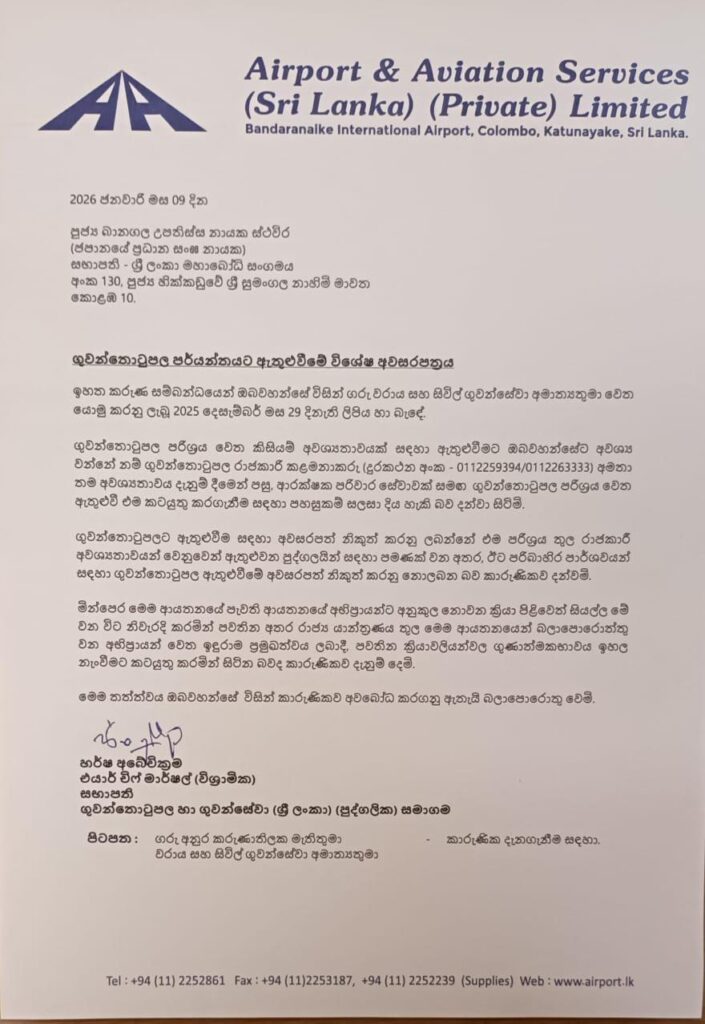 කෙසේ වෙතත්, 2026 ජනවාරි 09 වන දින ලිපියක් මගින් පිළිතුරු සපයන සභාපති හර්ෂ අබේවික්රම මහතා ඉතා පැහැදිලිව ප්රකාශ කර ඇත්තේ, ගුවන්තොටුපළ පර්යන්තය වෙත ඇතුළු වීමේ අවසර පත්ර නිකුත් කරනු ලබන්නේ “එම පරිශ්රය තුළ රාජකාරී අවශ්යතාවයන් වෙනුවෙන් ඇතුළුවන පුද්ගලයින් සඳහා පමණක්” බවයි.
