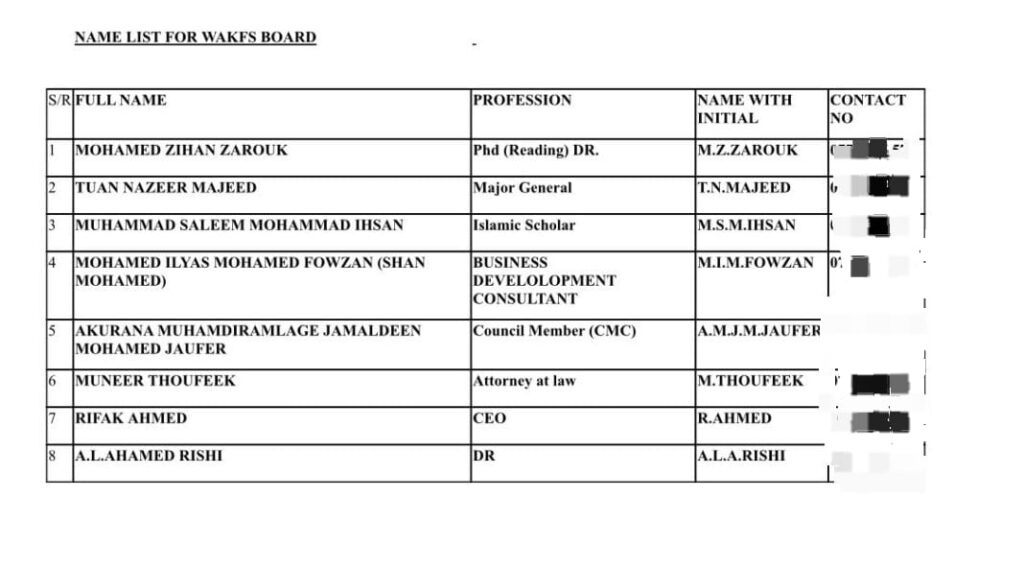 නව පත්කිරීම් අතර හිටපු හමුදා මේජර් ජෙනරාල්වරයෙකුගේ (Major General) නාමය යෝජනා වීම ප්රබල ප්රශ්න කිරීම්වලට තුඩු දී ඇත. මෙහිදී ප්රශ්න කෙරෙන්නේ අදාළ නිලධාරියාගේ පුද්ගලික චරිතය හෝ ඔහු රටට කළ සේවය නොවේ; වක්ෆ් සභාව වැනි ආයතනයකට එවැනි හමුදාමය පසුබිමක් අවශ්යද යන්නයි.