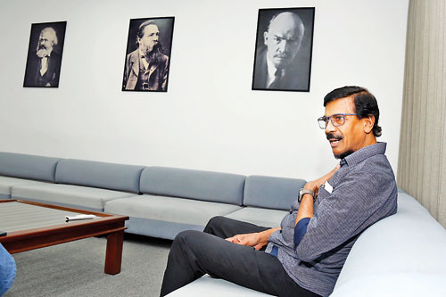 (ජනතා විමුක්ති පෙරමුණේ (ජවිපෙ) ප්රධාන ලේකම් ටිල්වින් සිල්වා. ඡායාරූපය – ඉන්දික හඳුවල)