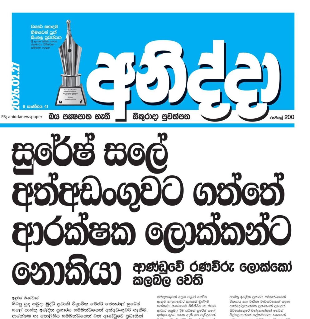 (අනිද්දා පුවත්පත් වාර්තාව ඇසුරිනි)
