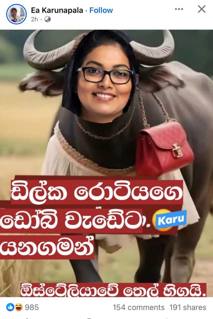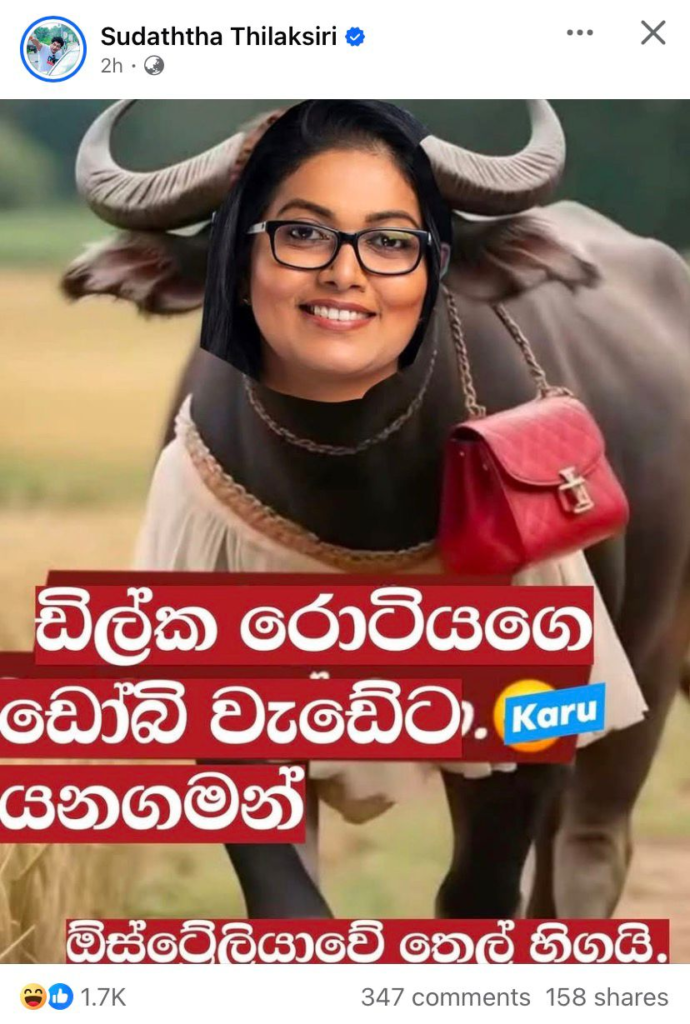 “මමත් ඕස්ට්‍රේලියානු පුරවැසියෙක්. මගේ මුණුබුරන් තිදෙනා එහි පාසල් යනවා. මේ වගේ පහත් ප්‍රකාශ නිසා ඒ දරුවන්ට පවා බලපෑමක් වෙනවා. මම අභියෝග කරනවා ඒ මනුස්සයාට පිරිමියෙක් නම්, තමන් කිව්වා වගේ ටිකට් එකක් අරන් ඕස්ට්‍රේලියාවට ඇවිත් ඔය කියපු දේ කරලා පෙන්වන්න කියලා. මම මේ ගැන ඕස්ට්‍රේලියානු පොලීසියටත් පැමිණිලි කරනවා. මේ වගේ අශිෂ්ට පුද්ගලයන්ට රටේ නීතියෙන් දඬුවම් ලැබිය යුතුයි.”