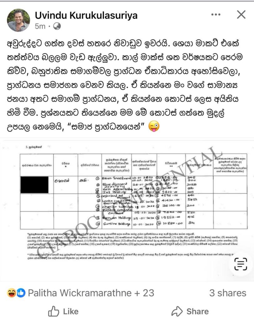 :ජවිපෙ ‘පන්ති පහ’ සහ කේ.ඩී. ලාල්කාන්තගේ කෝටි 46ක වත්කම