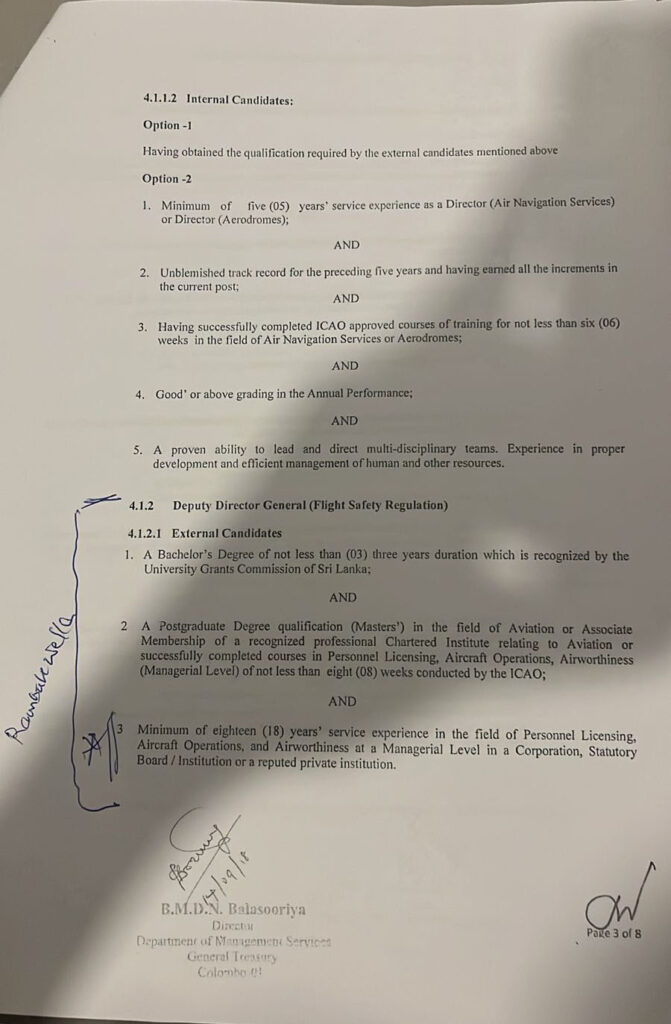 වඩාත් අවදානම් සහගත තත්ත්වය වන්නේ, වත්මන් DG/CEO විසින් තමාට අනුග්රහය දැක්වූ බවට චෝදනා එල්ල වන කැප්ටන් පැට්රික් ප්රනාන්දුට ශ්රී ලන්කන් ගුවන් සේවයේ ප්රධාන විධායක නිලධාරී (CEO) ධුරය ලබා ගැනීමට සහාය දෙන බවට තොරතුරු ලැබීමයි. DG/CEO යනු නියාමන අධිකාරියේ ප්රධානියා වන අතර, CEO යනු නියාමනයට ලක්වන ප්රධානතම ගුවන් සේවයේ ප්රධානියා වේ. නියාමකයා සහ නියාමනයට ලක්වන ආයතනය අතර පවතින මෙවැනි සෘජු හා අනුග්රාහක සම්බන්ධතා, ICAO විසින් අපේක්ෂා කරන නියාමන ස්වාධීනත්වයට විවෘත අභියෝගයකි. මෙම පත්වීම සිදුවුවහොත්, ආරක්ෂක අධීක්ෂණයට අදාළ තීරණ පෞද්ගලික මිත්රත්වයන් මත පදනම් විය හැකි බවට සැකයක් ඇති වන අතර, එය ICAO විගණනයේදී නොවැළැක්විය හැකි අසාර්ථක ප්රතිඵලයකට මඟ පෑදිය හැකි බවට දැඩි ලෙස අවධාරණය කළ හැකිය.