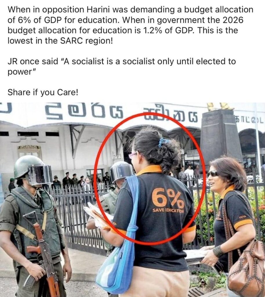 Today, as Prime Minister Amarasuriya stands in Parliament rejecting the immediate allocation of that same 6%—claiming “no such promise was made”, I write not as a political opponent, but as someone who feels the sting of professional betrayal.