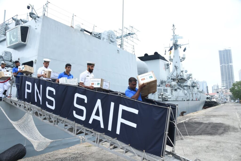 මේ අතර, ශ්‍රී ලංකාවේ යොදවා ඇති පකිස්තාන නාවික හමුදාවට අයත් යුධ නෞකාවක් (PNS) දැනටමත් සහන මෙහෙයුම් ආරම්භ කර ඇති අතර, එහි ඇති හෙලිකොප්ටර් යානා ශ්‍රී ලංකා හමුදා සමඟ සම්බන්ධීකරණය වෙමින් ගුවන් මගින් ගලවා ගැනීමේ මෙහෙයුම් සඳහා සක්‍රීයව දායක වේ.