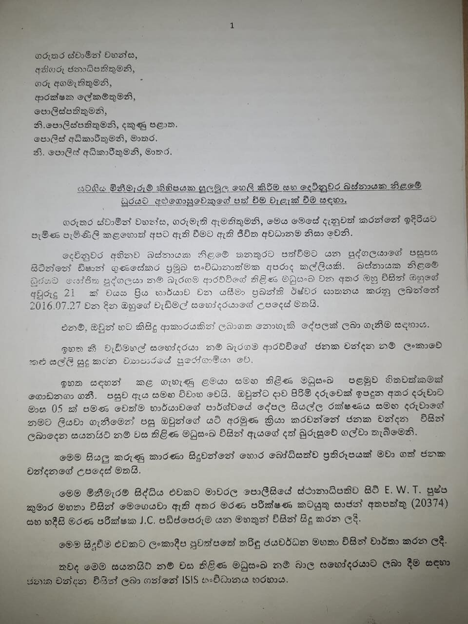 කෙසේ වුවද අභිනව කතරගම බස්නායක නිළමේවරයාට එරෙහිව එල්ල වී ඇති බරපතල චෝදනා මාලාවක් පිළිබඳව දේශපාලකයින්, රාජ්ය ප්රධානීන්, ආයතන ප්රධානීන්, සිවිල් ආයතන ඇතුලු ජනාධීපතිවරයා, අගමැතිවරයා, විපක්ෂ නායකවරයා ප්රමුඛව යවා ඇති විවෘත ලිපියක් ඊට අදාළ සටහන් පාදක කරගෙන මෙම විමර්ශනාත්මක වාර්තාව සකස් කර ඇත.