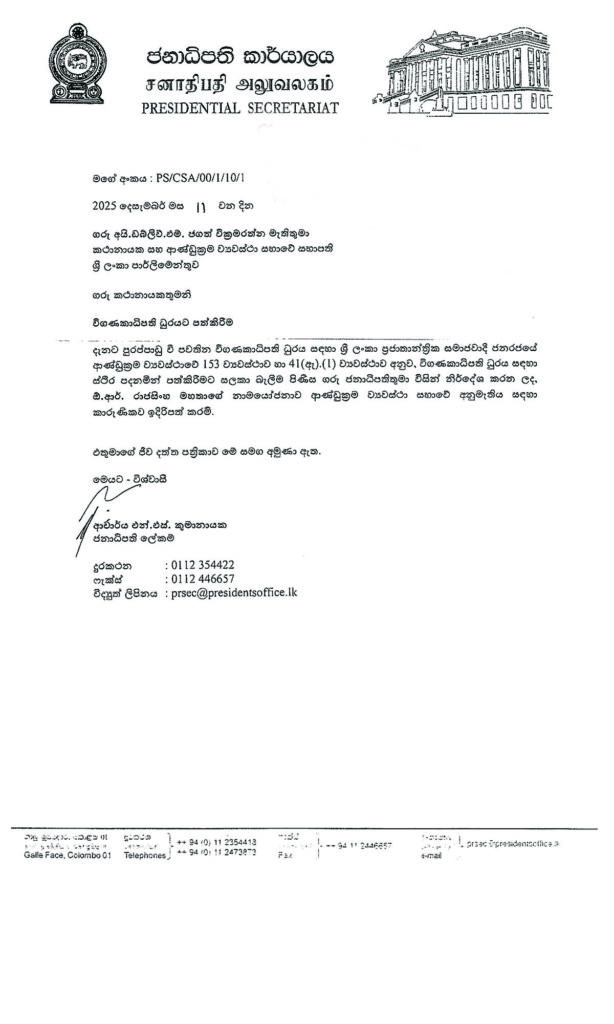 කෙසේ වෙතත්, රාජසිංහ මහතාගේ අයදුම්පත ඉදිරිපත් කළ දිනය (2025/12/10) නාමයෝජනාව ඉදිරිපත් කිරීමට පෙර දින වීම සහ ඔහු අධ්‍යක්ෂ මූල්‍ය තනතුරෙන් වහාම ඉල්ලා අස්වීම වැනි සිදුවීම්, මෙම සම්පූර්ණ ක්‍රියාවලිය පිටුපස ඇති දේශපාලන කඩිමුඩියේ සහ උපක්‍රමවල ස්වභාවය තවදුරටත් හෙළි කරයි.