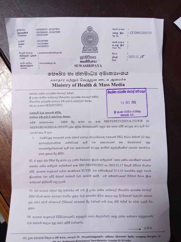 රටේ සෞඛ්ය ක්ෂේත්රය බිඳවැටී ඇති මොහොතක, රෝගීන්ගේ ජීවිත සමග සෙල්ලම් කරමින් කරන මෙම මහා පරිමාණ මූල්ය ජාවාරම් වහාම නැවැත්විය යුතුය. සත්යය හෙළි කරන නිලධාරීන් දඩයම් කිරීම වහාම නතර කර, අදාළ විගණන වාර්තාවල සඳහන් සියලු දූෂිතයන් ජනතාව ඉදිරියට ගෙන ඒම රජයේ වගකීමකි. එසේ නොවන්නේ නම්, මෙම රජයද පැරණි දූෂිත ක්රමයේම දිගුවක් ලෙස ජනතාව විසින් හංවඩු ගසනු ඇත.