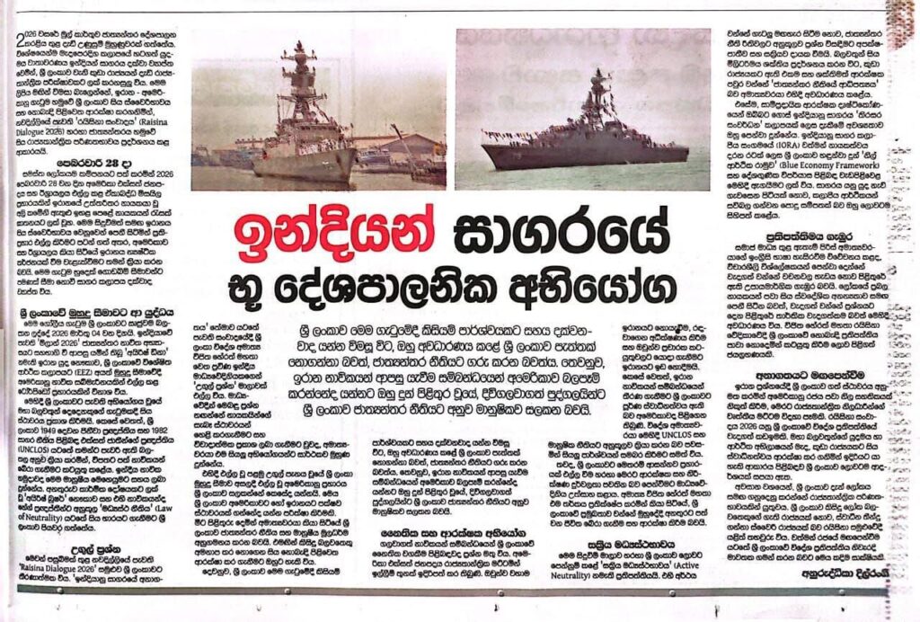 මෙවන් පසුබිමක් තුළ නවදිල්ලියේ පැවති ‘Raisina Dialogue 2026’ සමුළුව ශ්‍රී ලංකාවට තීරණාත්මක විය. ‘ඉන්දියානු සාගරයේ අනාගතය’ තේමාව යටතේ පැවති සංවාදයේ දී ශ්‍රී ලංකා විදේශ අමාත්‍ය විජිත හේරත් මහතා වෙත ප්‍රවීණ ඉන්දීය මාධ්‍යවේදිනියකගෙන් ‘උගුල් ප්‍රශ්න’ මාලාවක් එල්ල විය. මාධ්‍යවේදින් මෙබඳු ප්‍රශ්න නගන්නේ නායකයින්ගේ සැබෑ ස්ථාවරයන් හෙළිකර ගැනීමට සහ විවාදාත්මක ප්‍රකාශ ලබා ගැනීමට වුවද, අමාත්‍යවරයා එම සියලු අභියෝගයන්ට සාර්ථකව මුහුණ දුන්නේය.